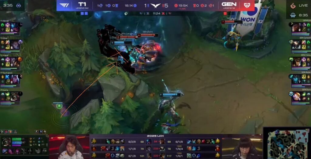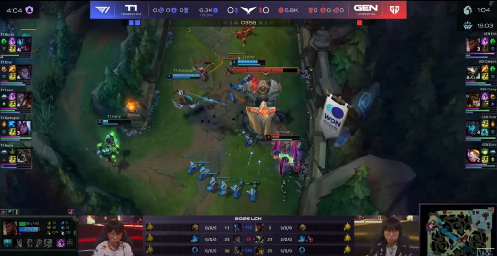 ⇒Gen.G側にゴツめのタンクが3枚、対してT1側はノータンク。後半戦5v5のロングトレードは厳しそうな予感。