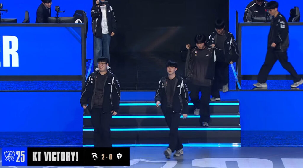 チームを支えていたコーチ陣も非常に嬉しそう。今日は2戦とも、試合後の笑顔や爽やかなシーンがとても印象的でした。LOLってスポーツっぽくなってきたなぁ、とも感じた瞬間。LCKから参加している4チームのうち、GENでもHLEでもなく、T1でもなく、KTが全勝で先ずノックアウトステージへ進出を決めたのはなかなか感慨深いものがあります。