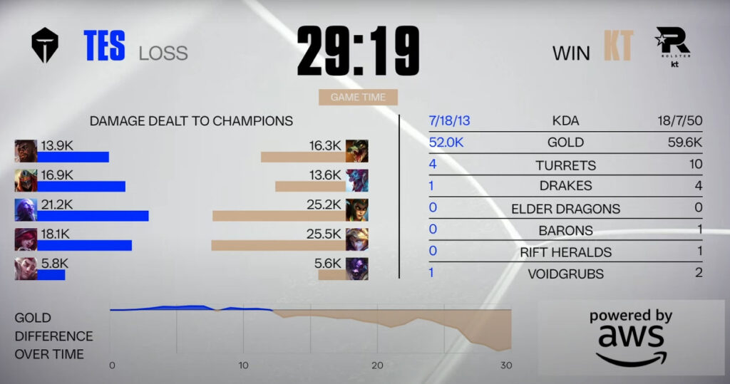 KT側はキルカウントだけ見ても27-10と中国3番手のTESを圧倒する勢いで初戦を先ず勝ち取りました。