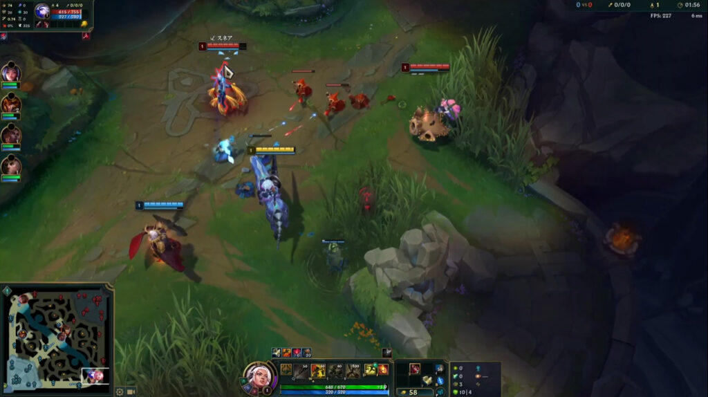 しかしLOLはチーム戦 有利を取ったMIDが縦横無尽に駆け回る