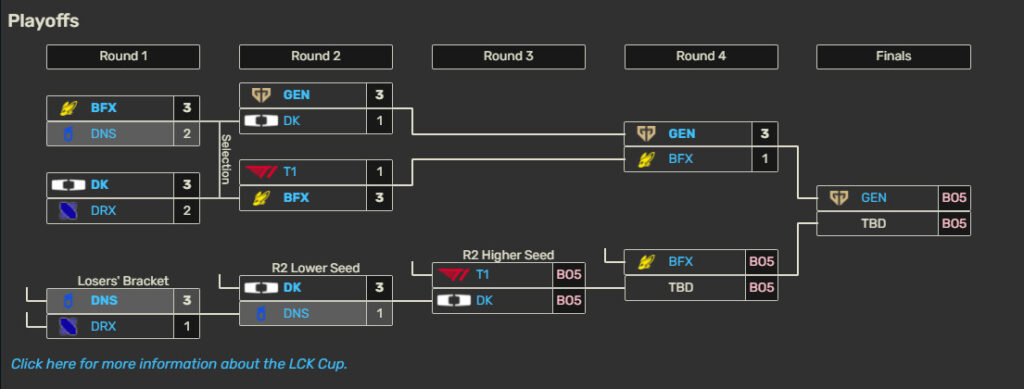 LCK CUPは予選から見ていてもイマイチレギュレーションが解りづらい部分もありますが、プレイオフまで来るといつもの流れ、といった感じで見やすいですね。今年はBFXが思ったより強い印象。Gumayusi選手の移籍先であるHLEは残念ながらプレイオフに出て来れなかったのが残念ですが、自分的にはT1やDKも好きなチームなのでここから先の展開は非常に楽しみです。